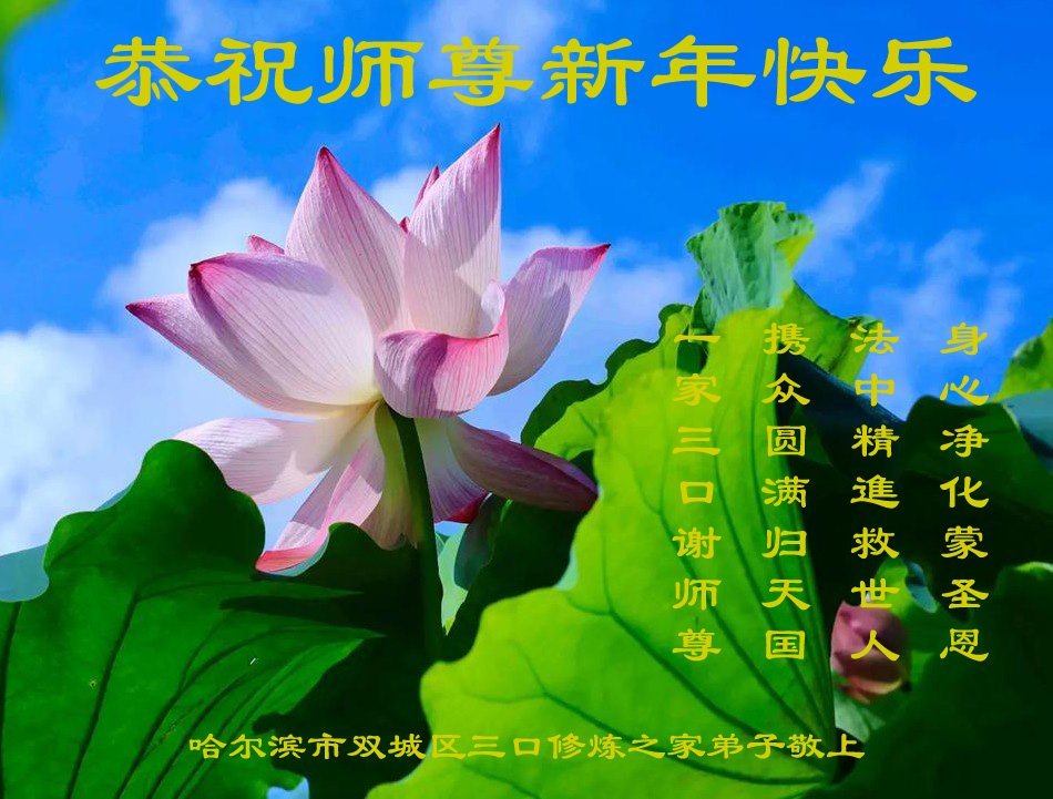 恭祝慈悲伟大的师父新年好! 黑龙江省哈尔滨市香坊区三位大法弟子敬上 黑龙江省哈尔滨市双城韩甸大法弟子恭祝师父新年快乐!