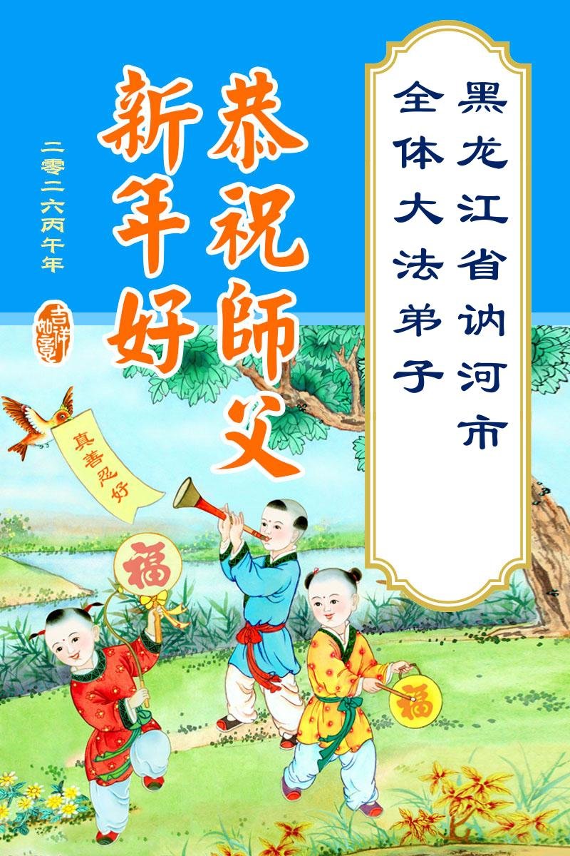 黑龙江省大庆市大法弟子 二零二六年二月十三日 黑龙江省齐齐哈尔市讷河市全体大法弟子恭祝慈悲的师尊新年快乐!