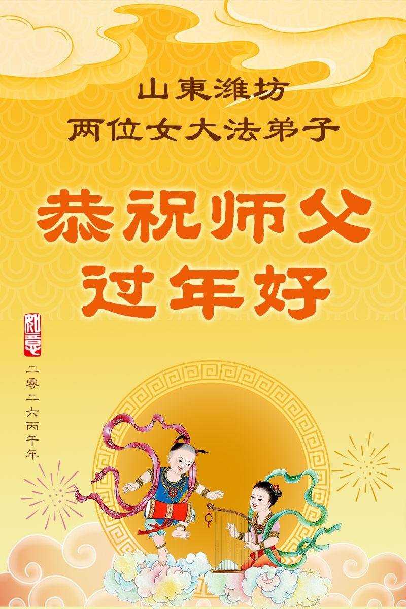 山东潍坊两位女大法弟子 二零二六年二月十二日 山东省潍坊市峡山区一大法弟子及家人恭祝慈悲伟大的师父过年好!