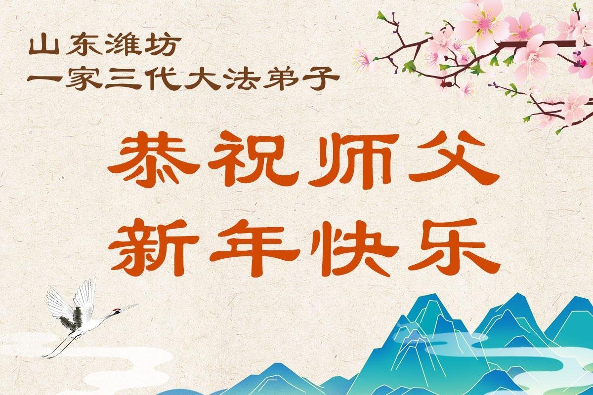 山东潍坊一大法弟子携家人恭祝师尊新年快乐!
