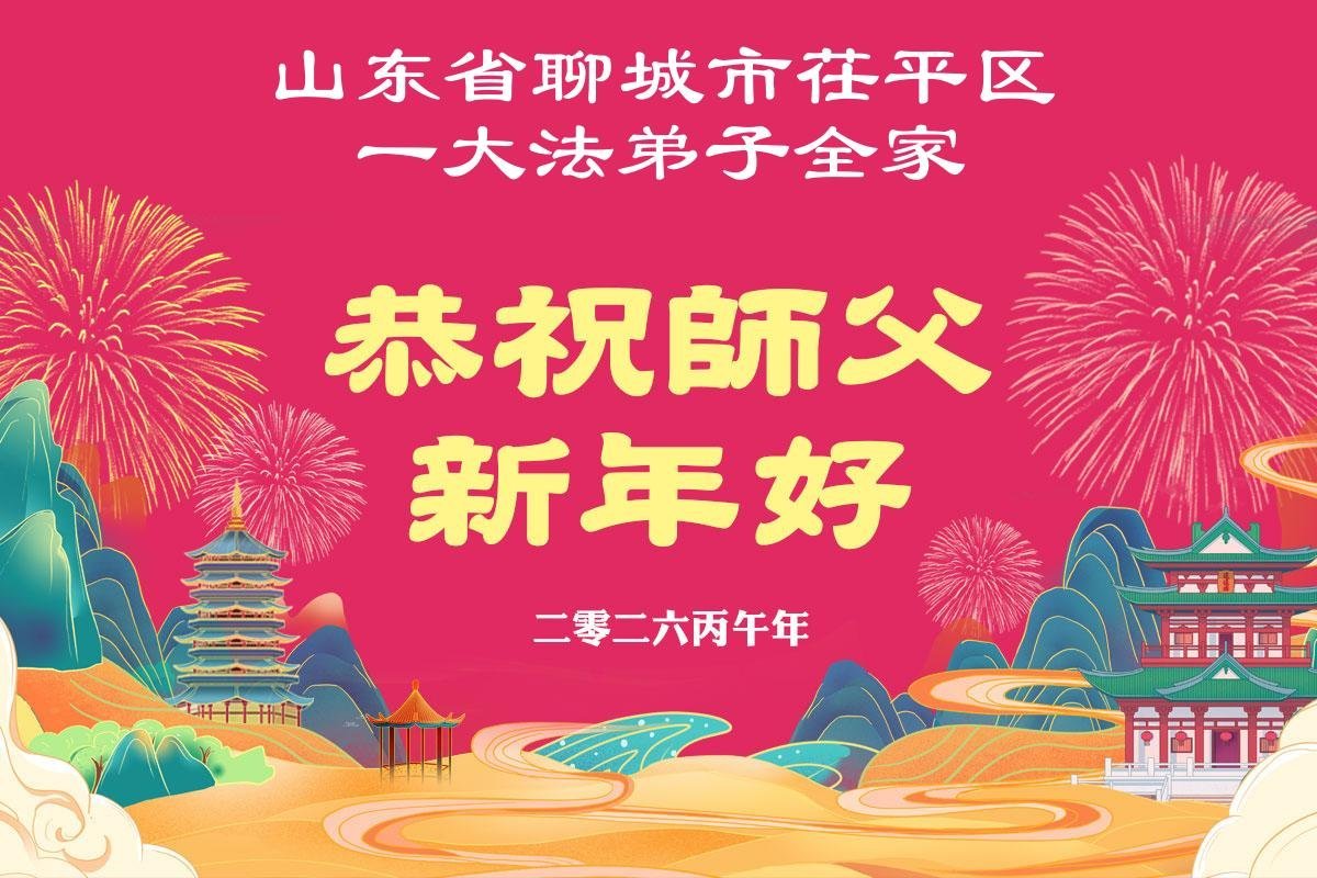 师尊过年好!弟子给您拜年了!师尊辛苦了!我们一定遵照师尊要求努力精進,随师回家。 山东省莱州市一个家庭学法小组共四人 二零二六年二月十四日 山东省聊城地区全体大法弟子恭祝师父过年好!