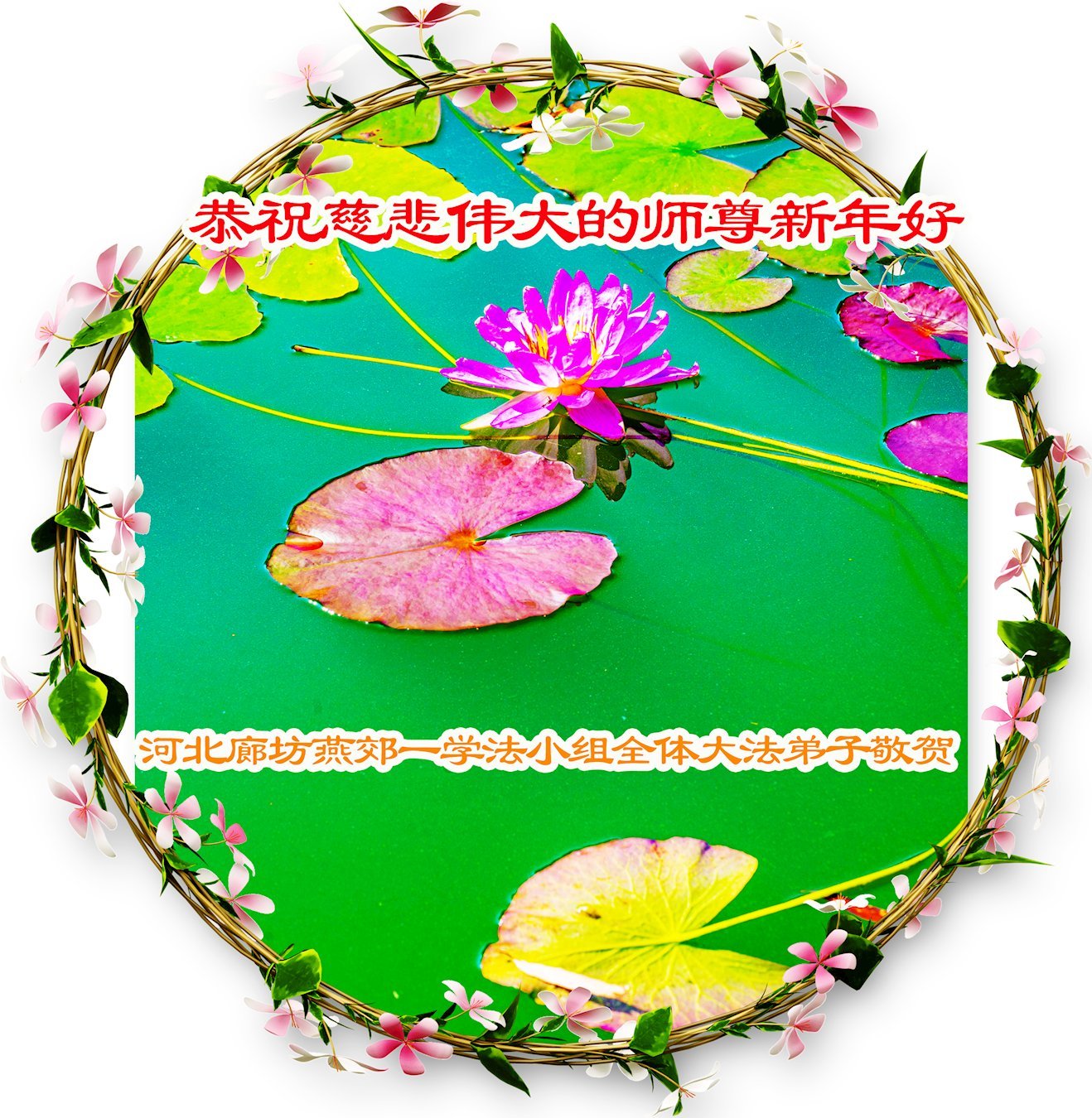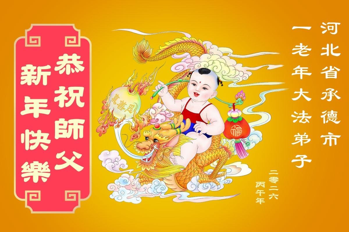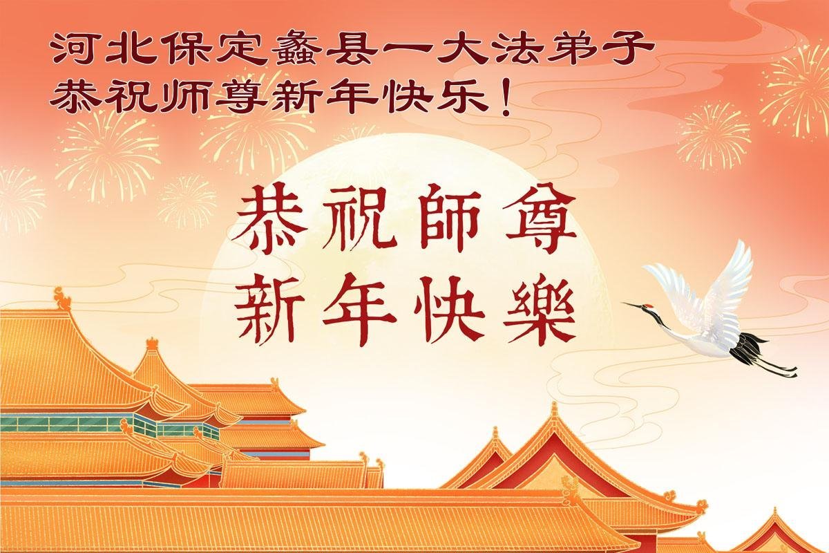 我们学法小组多年来一直沐浴在大法佛光普照中,对师尊救度洪恩的感激无以言表,值此二零二六丙午年到来之际,恭祝伟大慈悲的师父过年好!法轮大法好!真、善、忍好! 我们深知,不但我们的生命是师父给予的,而且经过漫长的岁月后师父又再一次次把我们从无知、愚昧、变异和堕落中、从地狱中捞起来,为我们承受了难以想象的一切;我们的正念、能力、智慧、美德等纯正的一切都来自于大法;所拥有的一切幸福、美好、慈悲、快乐等都源于师父的圣恩;一切荣耀都归于伟大慈悲的师父! 再次无限感恩师父的同时,我们愿都成为助师正法的合格弟子、做创世主永远善良和幸运的孩子! 没有师父的慈悲保护我们走不到今天!跪拜师尊过年好! 河北廊坊燕郊一学法小组全体大法学员弟子敬上 乙巳年腊月廿六 河北省张家口宣化区一大法弟子恭祝师尊新年快乐!