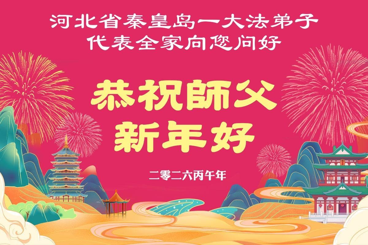 师尊您辛苦了!感恩师尊的慈悲苦度!感恩师尊的慈悲救度!感恩师尊的慈悲保护!谢谢师尊!法轮大法好!真善忍好! 河北唐山六名大法弟子 二零二六年二月十四日 河北省秦皇岛一大法弟子代表全家恭祝师父过年好!
