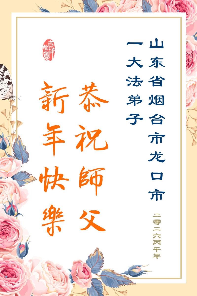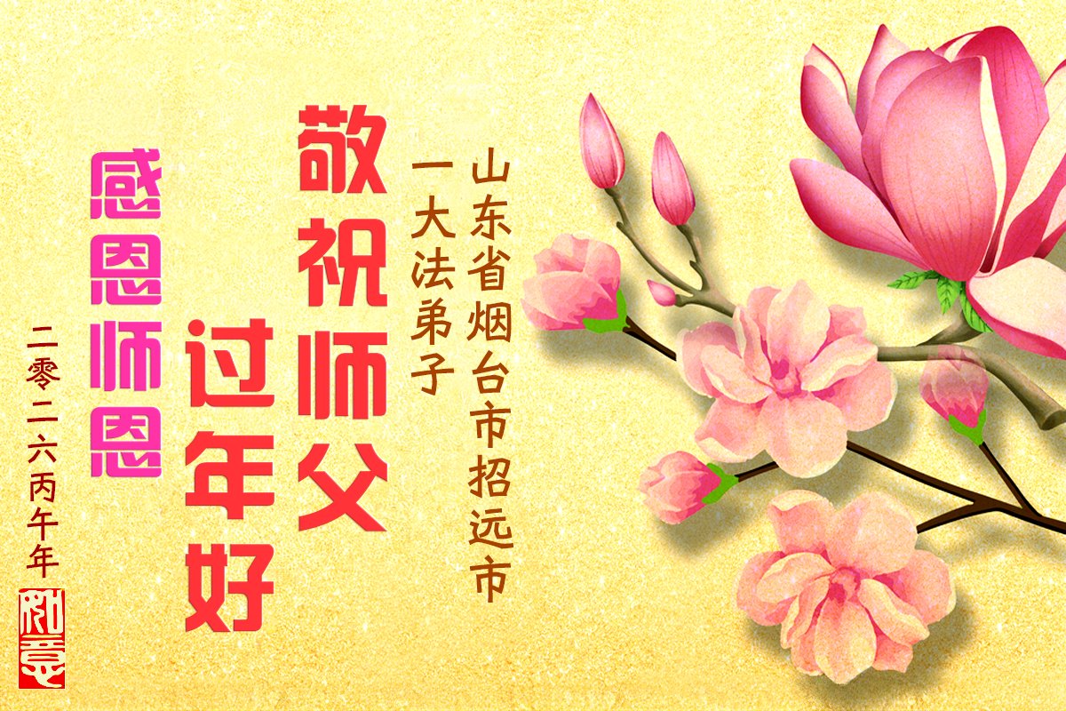 山东省烟台市招远市金岭镇一大法弟子恭祝师父新年快乐!
