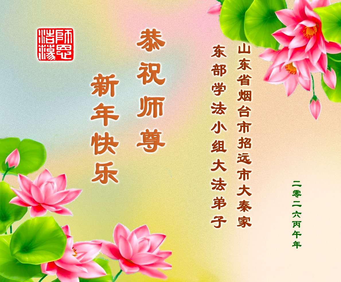 师尊您好!恭祝师尊新年快乐! 山东省青岛市学法小组大法弟子敬上 山东省青岛市大法弟子及家人恭祝师尊新年快乐!
