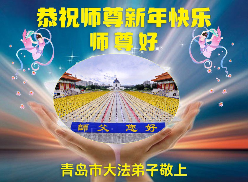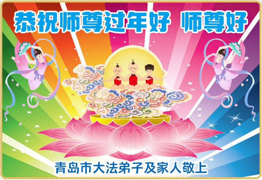 师尊您好!恭祝师尊新年快乐! 山东省青岛市大法弟子敬上 山东省青岛市全体大法弟子恭祝师尊新年快乐!
