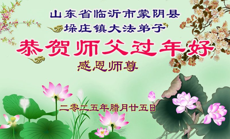 恭祝慈悲伟大的师尊新年快乐! 山东省临沂市蒙阴县青年大法弟子一家敬上 山东省临沂市蒙阴县一家大法弟子恭祝慈悲伟大的师尊新年快乐!