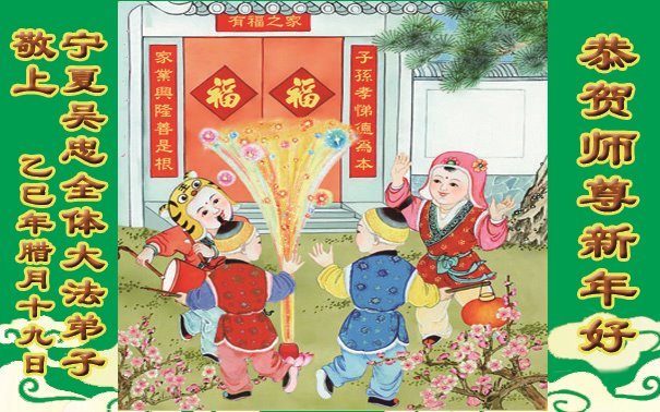 恭祝师尊过年好 得法十几载 真善忍为标准 谢师恩 再精進随师还 宁夏一大法弟子携全家敬上 2026年2月4日 宁夏吴忠全体大法弟子恭祝师尊新年好!