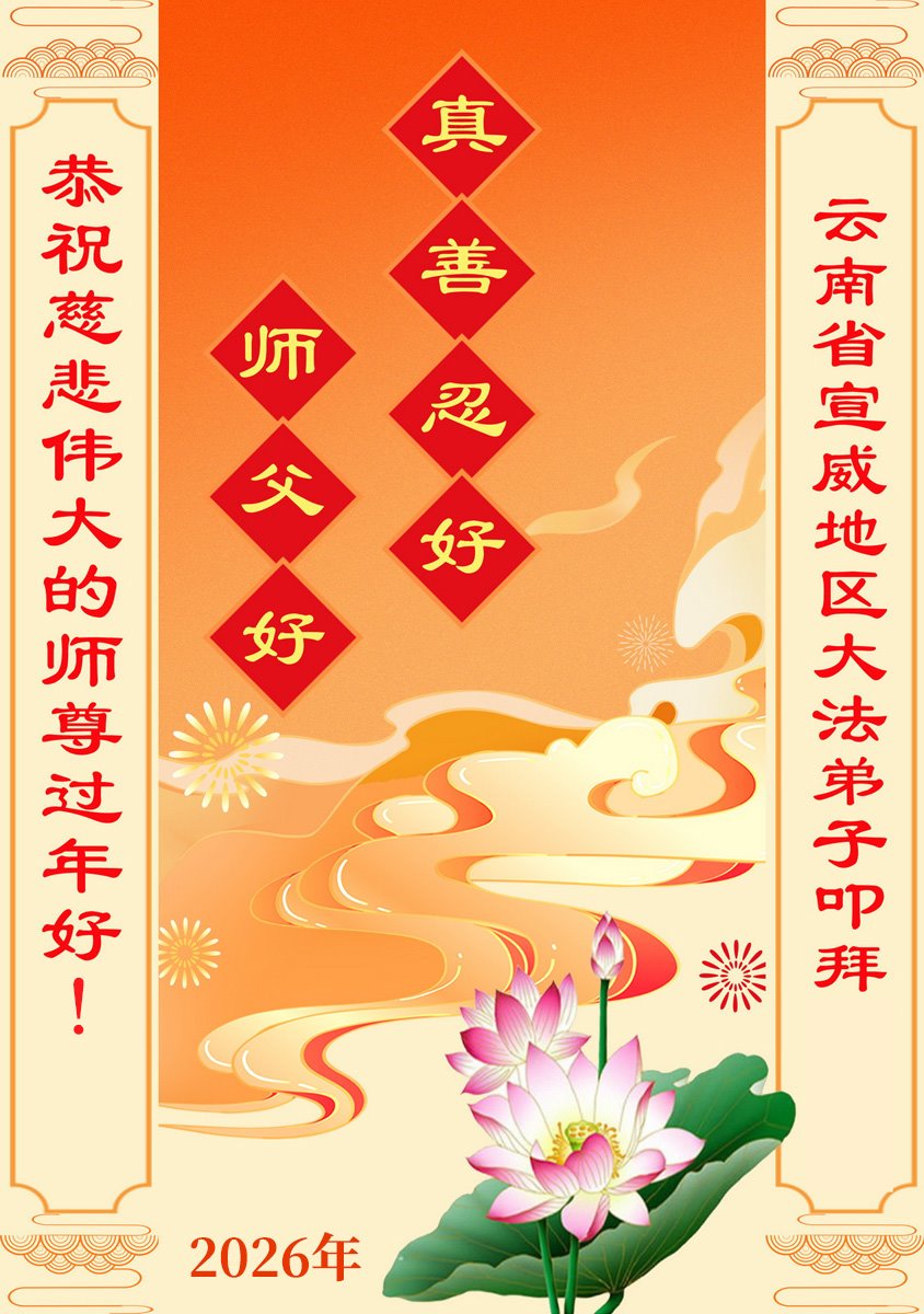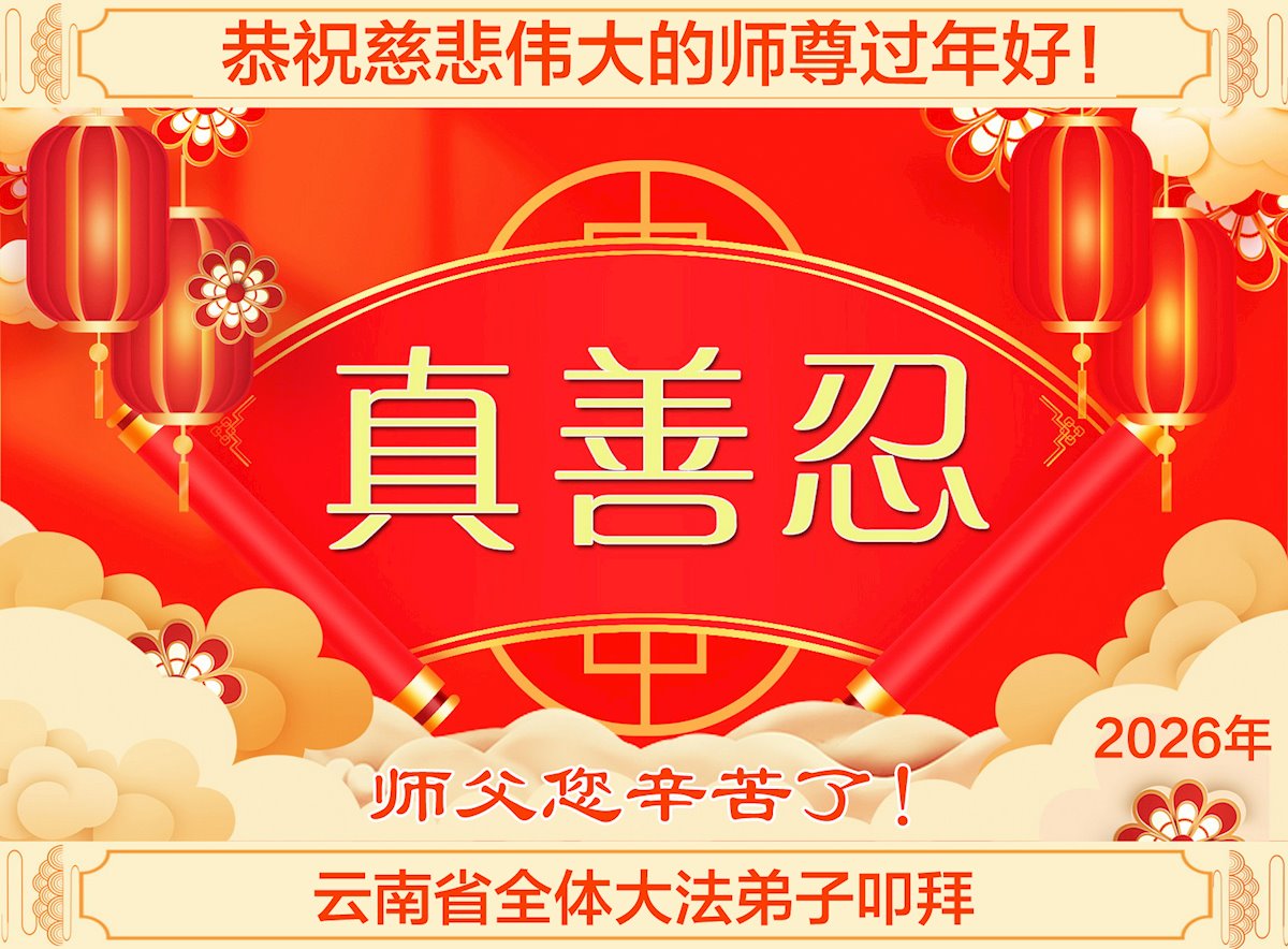 在慈悲伟大的师父帮助下,今年我终于明白了中国人为什么会吃那么大的苦,感恩师父的帮助。我代表我们一家三口和在狱中的母亲,恭祝师父新年快乐! 云南省嵩明县一家三口及狱中母亲 二零二六年二月十五日 贵州兴仁大法弟子恭祝师尊新年快乐!