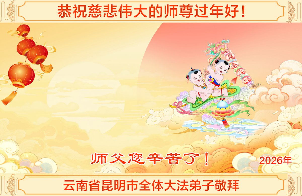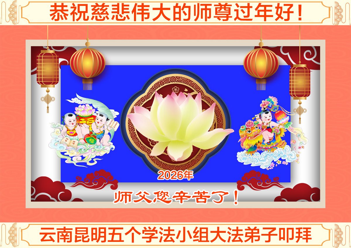 恭祝慈悲伟大的师父新年好!感恩师父慈悲苦度! 云南昆明大法弟子 二零二六年二月十六日 云南全体大法弟子恭祝慈悲伟大的师父新年好!感恩师父慈悲苦度!