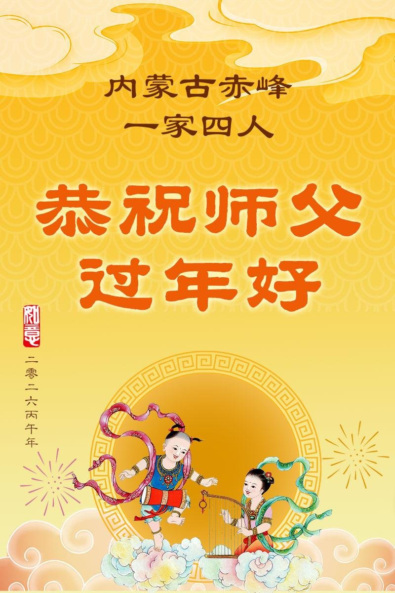 慈悲伟大的师尊您辛苦了!恭祝师尊新年快乐! 内蒙古赤峰市一大法弟子携全家恭祝师尊新年快乐!