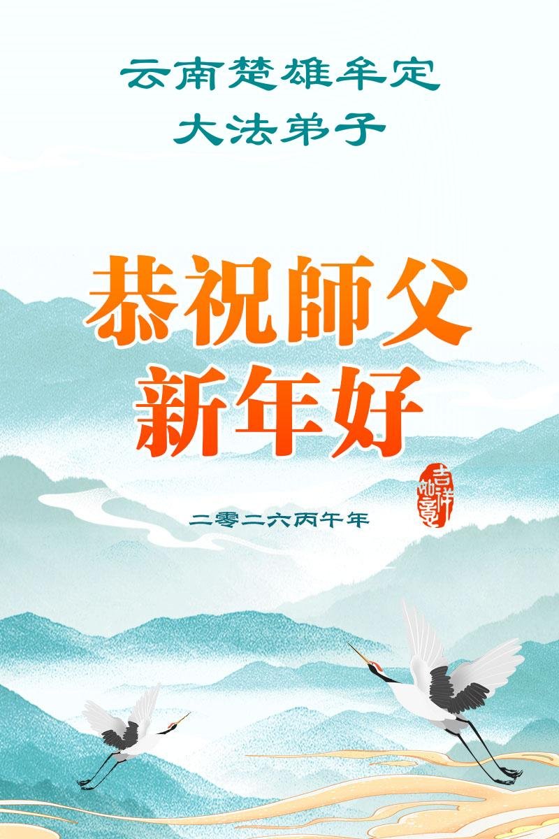 恭祝慈悲伟大的师父新年好!感恩师父慈悲苦度! 云南各民族大法弟子 二零二六年二月十六日 云南曲靖市宣威市大法弟子恭祝师尊过年好!